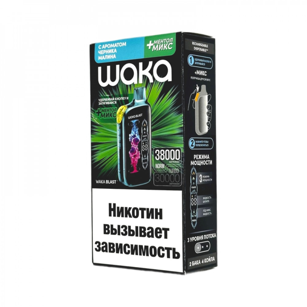 WAKA BLAST 38000 Hard - Черника малина + ментол микс - купить в Сургуте